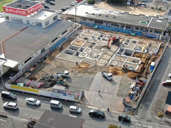 現在、工事現場では基礎の工事が終わり、いよいよ鉄骨が建つと新園舎のおおよその大きさが目で見てわかるようになりそうです。