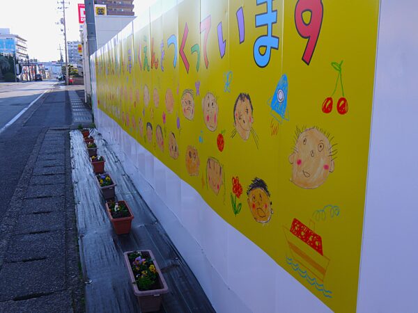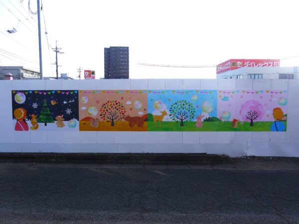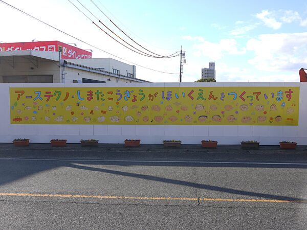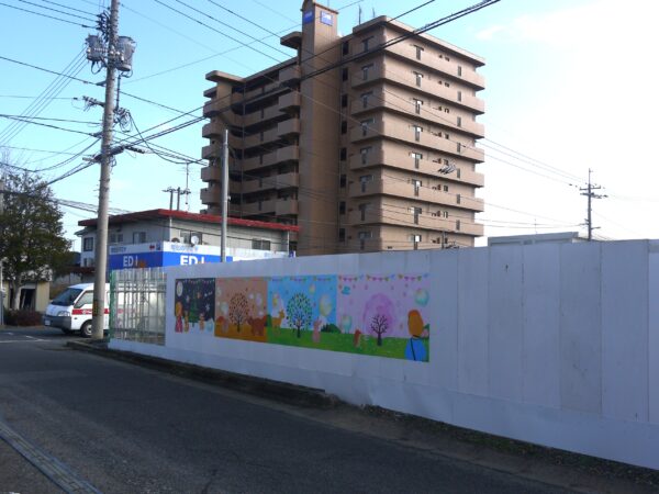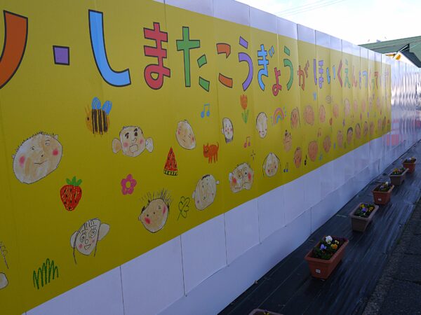【嶋田工業】山口県小野田地区保育所の仮囲いにイラストを描きました
