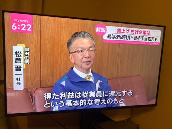 物価高騰の時流のなかで、大幅な賃金アップを実現した当社の取組が評価されたようです。