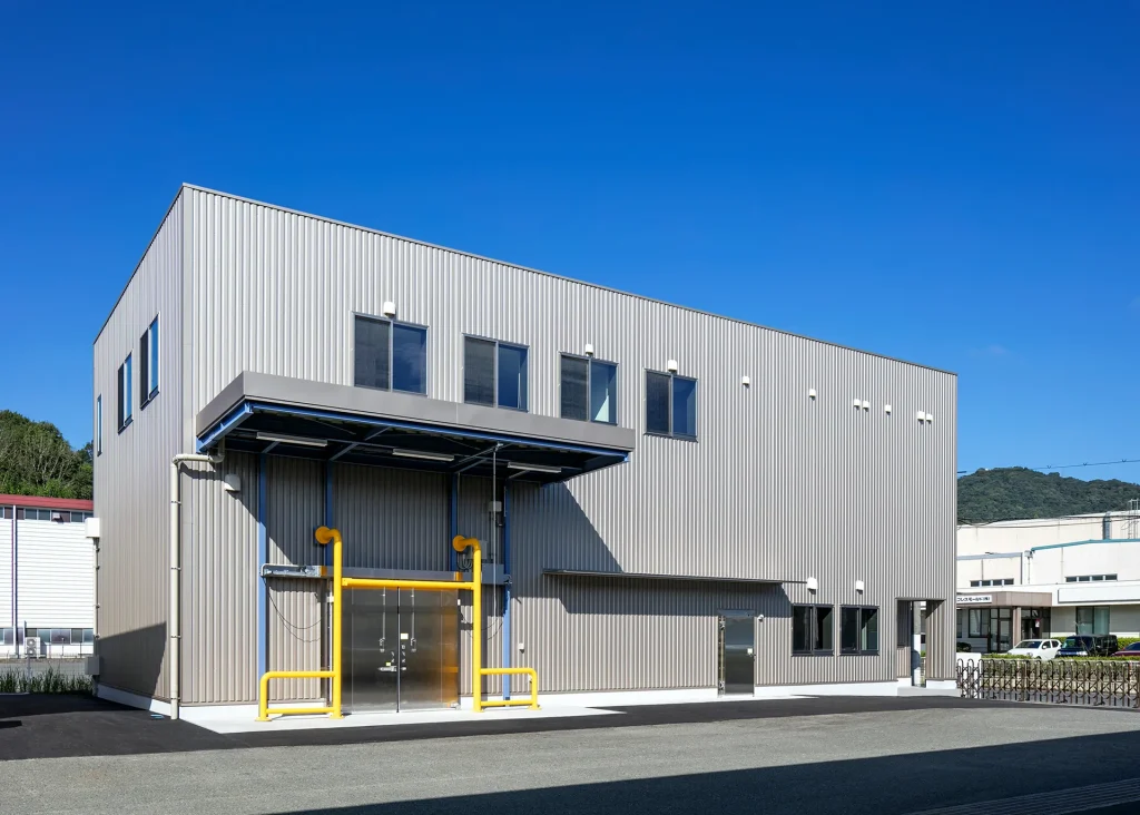 発注者 エア・ウォーター・マテリアル株式会社(事務所棟/新築)構造・規模 鉄骨造・2 階建延床面積 486.27 ㎡(倉庫棟/改築)構造・規模 鉄骨造・平屋建延床面積 859.00 ㎡所在地 広島県東広島市