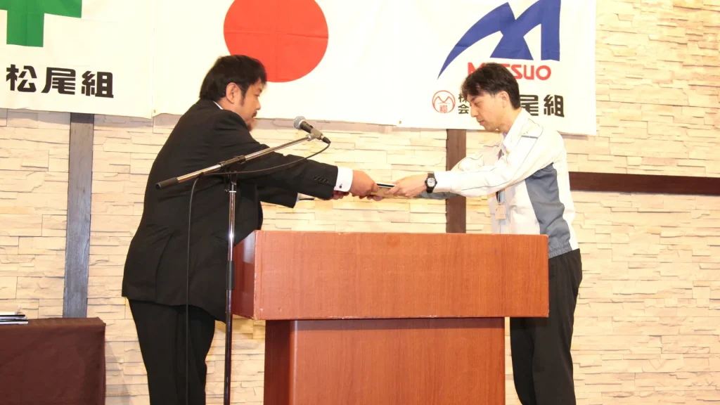 【松尾組】2025年10月15日 松柏園ホテルにて『松尾組 安全衛生協議会 第15回 安全衛生表彰式』を執り行いました。